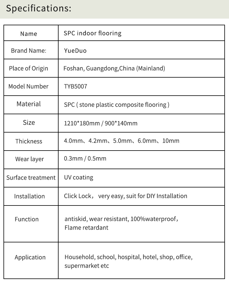 Product Name: Interlocking click SPC/PVC Plastic Flooring TYB5007